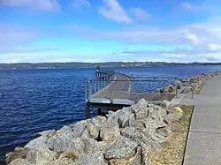 Features found within the park include: a memorial wall, pier of remembrance, interpretive signage, lighting, landscaping, pathways and seating.[1] A small area of garden named Lone Pine Grove has been planted with Aleppo Pines, the same tree as found on Lone Pine ridge in Gallipoli providing a living connection between Albany and Gallpoli.[2] Situated adjacent to Princess Royal Harbour at the bottom of York Street[3] the park is an open area containing the various features to commemorate the departure of soldiers who fought in World War I.[1]