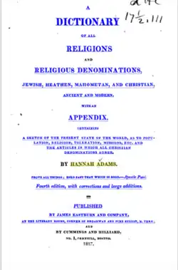 A Dictionary of All Religions and Religious Denominations is a 19th-century comprehensive survey of world religions by the American author, Hannah Adams. It was first published in Boston, Massachusetts in 1817.