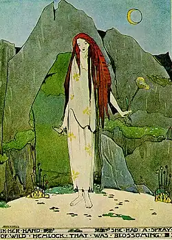 In Greek myth, pomegranates allude to blood and violence and life coming from death as well.[7] In Ancient Greece, pomegranates are most prominent in the myth of Persephone, who consumed pomegranate seeds which required her to spend some time in the underworld and on land during specific seasons of the year. This cycle is attributed to the temptation and consumption of pomegranates. A similar allegorical exploration of the use of pomegranates in the Greek myth is featured in "The Fisherman and His Soul". The repetition of pomegranate imagery in the story is used to reflect temptation, luxury and threat as the places the soul travels to: the Street of Pomegranates and the garden of pomegranates. The soul's drinking of the pomegranate juices parallels Persphone's consumption of the seeds and also "serves as a signal that the places through which the soul passes can be seen to constitute a moral underworld".[7] The ending of the story can also refer to the cycle of life and death in the myth of Persephone—the barren graves and the Sea-folk who left.