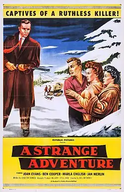 A Strange Adventure is a 1956 American crime film directed by William Witney, written by Houston Branch and starring Joan Evans, Ben Cooper, Marla English, Jan Merlin, Nick Adams and Peter Miller. It was released on August 24, 1956 by Republic Pictures.[1][2][3]
