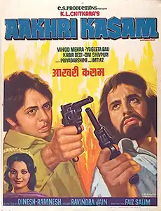 Aakhri Kasam is a 1979 Bollywood action film directed by Dinesh-Ramnesh.[1] The film stars Kabir Bedi, Vinod Mehra, Yogeeta Bali and Om Shivpuri in lead roles.[2]