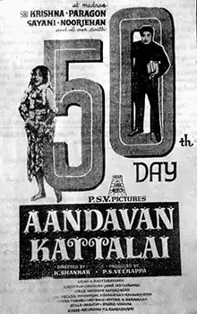 Aandavan Kattalai (transl. God's command) is a 1964 Indian Tamil-language film directed by K. Shankar and produced by P. S. Veerappa. The film stars Sivaji Ganesan and Devika, with J. P. Chandrababu, K. Balaji, S. A. Ashokan, A. V. M. Rajan and Pushpalatha in supporting roles. It was released on 12 June 1964. The film is loosely based on the 1930 German film The Blue Angel.[1]