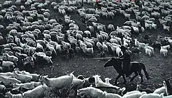 As its name suggests, the Abaga originates from the northern Abag Banner in the Xilingol League, Inner Mongolia.[5][12][13] It is a rare breed overall, with 3,758 individuals recorded at the end of 2008.[5]