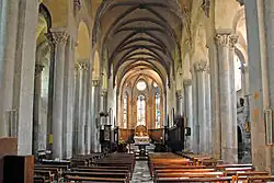 Romanesque capitals with figurative carvings of high quality survive in some quantity, and the church still contains some elements of Romanesque architecture.