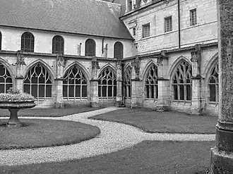 The abbey soon became a target for Viking raids, culminating in that of 9 January 852 when it was burnt down and the monks fled[2] with the relics of Wandrille. After more than a century in temporary accommodation at Chartres, Boulogne, Saint-Omer and Ghent, the community was at length brought back to Fontenelle by Abbot Maynard in 966 and a restoration of the buildings was again undertaken.[5] Richard I of Normandy then sent Maynard to establish the Benedictine Rule at Mont-Saint-Michel Abbey.[6]