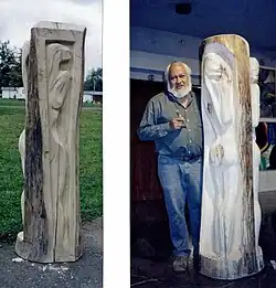 Over his career he had experimented with various materials and techniques, with most of his work in wood, bronze and later snow and ice. His works are generally medium to monumentally-sized.[3] He described his work as "neo-figurative" with elements of Cubist and Impressionist influences.[3][8] His work has also been described as having a touch of surrealism or magical realism.[10]