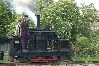 Uniquely amongst the quarries of the Corris area, Abercwmeiddaw used a steam locomotive to move rock on the tramways within the quarry. Braichgoch and Aberllefenni used internal combustion and battery-electric locomotives respectively, but Abercwmeiddaw was the only user of steam. It was described working in the quarry in 1877,[15] and was advertised for sale in 1893 and 1906. The 1906 advertisement listed a "Locomotive engine with vertical multitubular boiler, 2 6in cylinders, four wheels coupled 2ft 3in gauge by H & J Ellis". It is likely the locomotive was a standard De Winton product[7] that had been resold by Salford engineering company H & J Ellis.[2] The locomotive had certainly been sold by 1920.[3]