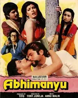 Abhimanyu is a 1989 Indian Hindi-language action drama film directed by Tony Juneja. The film stars Anil Kapoor, Kimi Katkar, Poonam Dhillon and Anita Raj.[1] It is a remake of the 1982 Tamil film Sakalakala Vallavan. It was a flop despite being a satisfactory opening.[2]
