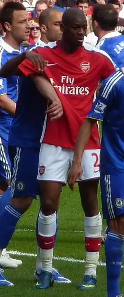 Vassiriki Abou Diaby (born 11 May 1986), known as Abou Diaby, is a French former professional footballer. He played primarily in a box to box role, adept at both attacking and defending, and was described as a player who was "languid, elusive, and athletic" that could either "dribble past opponents or slip passes to team-mates".[4] Of Ivorian descent, Diaby also possessed "superb touch" and "excellent close control". Diaby's career was hampered by numerous repetitive injuries, a problem that existed from his time in France.[4][5]