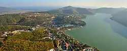 Abrau-Dyurso or Abrau-Durso (Russian: Абрау-Дюрсо) is a rural locality (a selo) under the administrative jurisdiction of the City of Novorossiysk in Krasnodar Krai, Russia. It is located on the shore of Lake Abrau, 14 kilometers (8.7 mi) west of Novorossiysk. It should not be confused with the khutor of Dyurso,[4] which is located 4 kilometers (2.5 mi) to the south, where the Dyurso River enters the Black Sea, and which is sometimes incorrectly considered to be a part of Abrau-Dyurso.[5] Population: 3,519 (2010 Census);[1] 2,982 (2002 Census);[6] 2,792 (1989 Soviet census).[7]