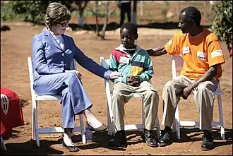 The U.S. President's Emergency Plan for AIDS Relief (PEPFAR) is the U.S. government's initiative to combat HIV/AIDS globally.[49] PEPFAR works with the governments of 22 countries worldwide to create sustainable programs to prevent HIV and improve the lives of those suffering.[50] PEPFAR provides funding to other countries to help combat HIV/AIDS. It does so with certain guidelines and restrictions on the recipients. PEPFAR promotes an "ABC" approach – Abstain, Be faithful, and use Condoms. Funding recipients may give information about condoms to youth over 15 years old but cannot use the funding to provide condoms or promote usage. In countries receiving funds from PEPFAR, teens under the age of 15 are not allowed to receive information about condoms.[51] The rationale behind this is to not encourage sexual activity despite evidence that condom use does not cause promiscuity.[52] PEPFAR was founded in 2003 with the mandate that 33% of its funds provided for prevention be used for abstinence-only education. Since the reauthorization in 2008, this mandate was removed, with a shift toward directives to spend at least 50% on abstinence-only education.[53] The role of partners has been an area of debate surrounding PEPFAR. In 2006, 23% of all the community partners were faith-based and debate exists over whether the U.S. should be allowing grants specifically written for faith-based organizations and prevention.[54] A few countries that have received PEPFAR funding – specifically Mozambique and Rwanda – have expressed distaste for the U.S.' push for faith-based education and abstinence-only funding.[54] Human rights groups have expressed concern that condom availability has decreased since PEPFAR's involvement in the global AIDS crisis.[55]