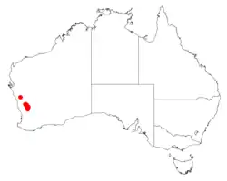 It is native to an area in the Wheatbelt and Mid West regions of Western Australia where it is found growing in yellow coloured sandy or loamy soils.[1] The range of the plant extends from around Ballidu in the south to around Latham in the north where it is usually found as a part of Eucalyptus woodland or open heath communities.[2]
