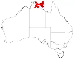 It is found in the Bioregions of Arnhem Coast, Arnhem Plateau, Central Arnhem, Gulf Fall and Uplands, Pine Creek, and Tiwi Cobourg.[1]