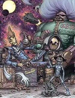 - "The Doppelgarp" (in 2000 AD #452-472, 1986)