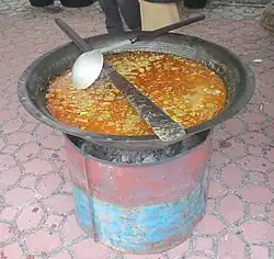 Acehnese cuisine is known for its combination of spices just as are commonly found in Indian and Arabic cuisine, such as ginger, pepper, coriander, cumin, cloves, cinnamon, cardamom and fennel.[43] A variety of Acehnese food is cooked with curry or curry and coconut milk, which is generally combined with meat such as buffalo, beef, mutton, fish, or chicken.[44] Several types of traditional recipe use a blend of cannabis as a flavoring spice; such cases are also found in the cuisine of some other Southeast Asian countries, such as Laos.[45] However today, those substances are no longer used.[46]