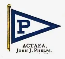 The Actaea was registered to John J. Phelps, with the Atlantic Yacht Club of the New York Harbor. Phelps had a private pennant flag with the letter "P" on it.[14]