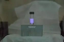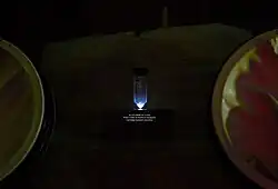 ![]() Cherenkov radiation from a sample of Ac-225 (17 mCi) | |