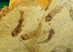 Fossil of a ray-finned perch (Priscacara serrata) from the Lower Eocene about 50 million years ago