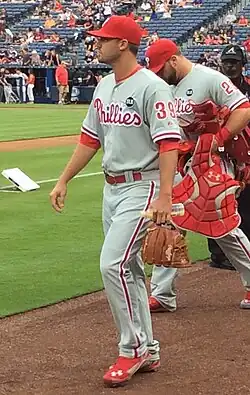 In 2018, he was 0–2 with one save and a 3.83 ERA with 50 strikeouts in 491⁄3 innings for the Phillies.[27] In 2019, he was 3–3 with a 3.94 ERA along with 29 strikeouts in 292⁄3 innings for the Phillies, and ended his season early on the injured list with a left hip flexor strain.[27]