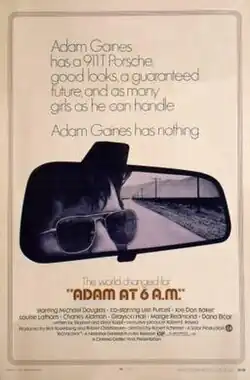 Adam at 6 A.M. is a 1970 American drama film directed by Robert Scheerer. It stars Michael Douglas, Lee Purcell, Joe Don Baker, Louise Latham, Charles Aidman, Grayson Hall, Marge Redmond, and Dana Elcar. The film did not receive much attention when it was released. The film was filmed almost entirely on location in the small Midwest town of Excelsior Springs, Missouri,[2] as well as Cameron, Missouri and Orrick, Missouri.