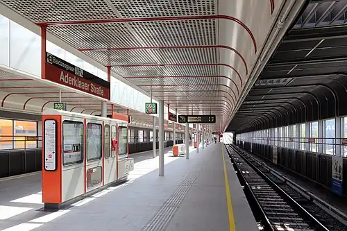 Aderklaaer Straße is a station on U1 of the Vienna U-Bahn.[1] It is located in the Floridsdorf District. It opened in 2006.