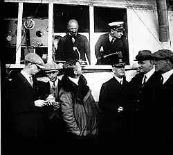 Admiral Moffett meets the airship Shenandoah and crew, during flight test landing at St. Louis Flying Field, on 2 October 1923