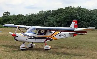 - Two seat "Cruiser" model, with a semi-monocoque structure made from aluminium sheet and a maximum take-off weight of 750 kg (1,650 lb). Its 9.47 m (31.1 ft) span wing employs a NACA 5417 airfoil, has an area of 11.94 m2 (128.5 sq ft) and flaps. Standard engines available are the 100 hp (75 kW) Rotax 912ULS, the 115 hp (86 kW) Rotax 914 and the 160 hp (119 kW) Lycoming O-320 four-stroke powerplants. The aircraft is undergoing EASA CS-VLA and Serbian certification.[2][6]