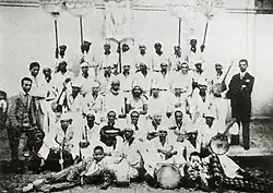 Many blacks were beginning to gain space and respectability in teaching, union organizing, and other areas,[9][30] such as Dario de Bittencourt, lecturer and professor of law at UFRGS and director of the newspaper O Exemplo,[30] Paulino Azurenha, considered by many authors the best literary chronicler of the state in the early 20th century and an important figure in journalism,[32] and José Cândido de Campos Júnior, lawyer, district attorney, intendant of Caxias do Sul, and grand-master of the Masonic lodge Força e Fraternidade.[33][34] An original and influential figure was Custódio Joaquim de Almeida, allegedly an African prince, who settled in Porto Alegre and died in 1935. He was a religious leader and important disseminator of batuque, had contacts in the elite and political class and was an aggregator of the black community. His figure was surrounded by rich folklore and became a symbol of the anti-racist struggle and for the free expression of African cults.[35][36][37]