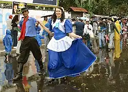 The black contribution to the state is of significance on a range of areas: Economy, the press, arts, spirituality, social movements, folklore, education, feminism, politics, and society; renewing and enriching the regional collective culture and identity and influencing the national reality.[8][77][78] Although the formation of differentiated modalities of activism and of a regional culture with its own characteristics from the African heritage has already been patented, fruits of a peculiar geography, history, and context,[2][18][79] "African-Gaúcho culture" as a scientific concept is in a process of construction and delimitation, but the term has already gained expressive popular acceptance. In the words of Paulo Romeu, a member of the African community interviewed by researcher Patrícia da Silva Pereira, the term "is being used more, in the popular sense. People are identifying themselves more, saying that it is African-Gaúcho. [...] We have an African worldview. We understand ourselves as Brazilians, this whole mixture of Brazilians, this whole mixture that we have of the African-Gaúcho, this mixture with Italians, Germans, Slovaks, Indians, Indians from the Andes, who are mostly Indians. This African-Gaúcho thing is very different from the African that is there in the northeast of Brazil."[80] The confrontation with groups from other cultures highlights the specificities of local black groups, specificities that become the basis for collective mobilizations.[45] For Silva Pereira:[81]