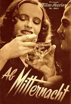 After Midnight (German: Ab Mitternacht) is a 1938 French-German drama film directed by Carl Hoffmann and starring Gina Falckenberg, Peter Voß and René Deltgen.[1] It was shot as a German-language version of the French film Nights of Princes, produced as a co-production between the French subsidiary of Tobis Film and the producer Joseph N. Ermolieff. Such multiple-language versions were common during the decade. Both films were based on the 1927 novel Nights of Princes by Joseph Kessel.
