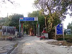 Agartala (/ˌʌɡərtəˈlɑː/, Bengali: [agorot̪ɔla] , ⓘKok Borok: [aguli])[5] is the capital and the largest city of the Indian state of Tripura, situated on the banks of Haora/Saidra River, about 2 kilometres (1.2 mi) east of the border with Bangladesh[6] and about 2,499 km (1,552 mi) from the national capital, New Delhi.[7] According to 2022 AMC data,[8] Agartala is the second most populous city after Guwahati in Northeast India. It is India's third international internet gateway and being developed under the Smart Cities Mission.[9]