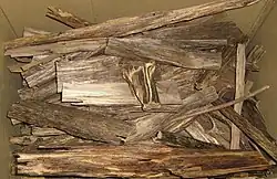 The odour of agarwood is complex and pleasing,[8] with few or no similar natural analogues. In the perfume state, the scent is mainly distinguished by a combination of "oriental-woody" and "very soft fruity-floral" notes. The incense smoke is also characterised by a "sweet-balsamic" note and "shades of vanilla and musk" and amber.[7] As a result, agarwood and its essential oil gained great cultural and religious significance in ancient civilizations around the world. Over 3,000 years ago, the ancient Egyptians used agarwood incense in their funeral rites.[9] It was described as a fragrant product as early as 1400 BCE in the Vedas of India.[10]