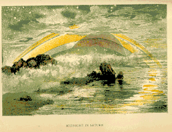 Artist's impression of midnight on Saturn from Giberne's popular astronomy book Sun, Moon and Stars
