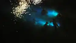 Agnete and the Merman is a group of bronze sculptures in Copenhagen, Denmark, located underwater in the Slotsholm Canal next to the Højbro Bridge. It has been referred to as one of the least-known works of art in Copenhagen.[1] The sculptures were made in 1992 by the Danish sculptor, photographer, and author, Suste Bonnen.[2] They portray a merman and his seven sons with outstretched arms, begging Agnete to return home.[3] Three other sculptures of merfolk are located in Copenhagen: the "Black Diamond Mermaid", a copy of Anne Marie Carl-Nielsen’s 1921 statue; a large (15-foot) granite mermaid[4] located on the port-of-call cruise ship dock in Copenhagen; and the famous Little Mermaid statue, located on the water’s edge along Langelinie promenade.