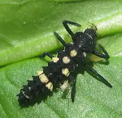 A larva of a ladybird, devouring aphids. Chimoio, Mozambique