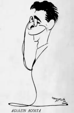 Agustín Acosta y Bello (1886–1979) was a Cuban poet, essayist, writer and politician.[1][2] Acosta is considered by historians to be one of the most important Cuban writers of the twentieth century, and one of the three most important poets in the entire history of Cuba.[3] Acosta was a revolutionary activist, and his poetry reflected his Cuban nationalism. He was both the National poet of Cuba and also one of its Senators, when the Republic still existed. He won awards for his poetry, but also spent time as a political prisoner for criticizing the Cuban President. He lambasted the hegemonic powers of the United States in the Caribbean, but also went into exile there in the last years of his life.[1][2]