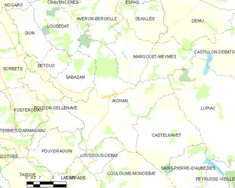 Aignan is located in the canton of Adour-Gersoise and in the arrondissement of Mirande.