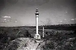Aiming stones were carved in the form of a stele or column, and bore engraved on the part of them facing the shot the identity and occupation of the archer, the distance, and the date of the shot. If a high dignitary, a vizier, or the sultan himself was the author of the record, the nişan taşı assumed the appearance of a veritable monument, often bearing engraved poetic compositions in Ottoman Turkish praising the archer's skills.[1][2][3] There were 300 aiming stones in Istanbul's shooting range at the end of the Ottoman era; of these only 40 have survived.[1] One of Istanbul's most important neighborhoods, Nişantaşı, took its name from the numerous shooting stones in the area.[4]