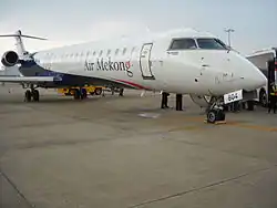 Mekong Aviation Joint Stock Company[1] (Vietnamese: Công ty Cổ phần Hàng không Mê Kông[2]), doing business as Air Mekong, was a short-lived airline from Vietnam which operated scheduled passenger flights from its main hub at the now-closed Duong Dong Airport in Phu Quoc and secondary hubs at Noi Bai International Airport in Hanoi and Tan Son Nhat International Airport in Ho Chi Minh City. Its headquarters were located in Phú Quốc, Kiên Giang Province. It was established in 2009 and flight operations were launched on 9 October 2010. This was the third privately owned airline of Vietnam, after Indochina Airlines (defunct as of 2009), and VietJet Air. Air Mekong leased four Bombardier CRJ 900 aircraft from SkyWest Airlines, each equipped with 90 seats in both business and economy classes.[3][4][5][6] In 2011, Air Mekong operated 10,750 flights and carried about 710,000 passengers.[7]