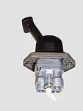 The supply system compresses, stores and supplies high-pressure air to the control system as well as to additional air operated auxiliary truck systems (gearbox shift control, clutch pedal air assistance servo, etc.). The air compressor draws filtered air from the atmosphere and compresses it, storing the compressed air in high-pressure reservoirs.[4] Most heavy vehicles have a gauge within the driver's view, indicating the availability of air pressure for safe vehicle operation, often including warning tones or lights. A mechanical "wig wag" that automatically drops down into the driver's field of vision when the pressure drops below a certain point is also common.