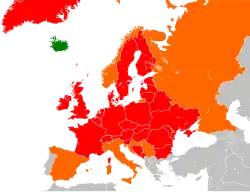 At 23:00 UTC+02 on 15 April 24 airports, including Charles de Gaulle Airport, were closed.[51] On 17 April, the Direction Générale de l'Aviation Civile extended the suspension to 35 airports, including all Paris airports, until 08:00 UTC+2 on Monday 19 April.[52] On 18 April, the closure of the Paris airports was extended to at least 08:00 UTC+2 on Tuesday 20 April.[53] |