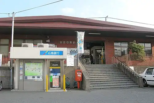 Aki-Nakano Station (安芸中野駅, Aki-Nakano-eki) is a passenger railway station located in Aki-ku in the city of Hiroshima, Hiroshima Prefecture, Japan. It is operated by the West Japan Railway Company (JR West).[1]