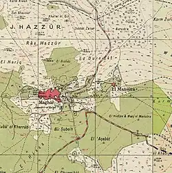 In the 1922 census of Palestine, conducted by the British Mandate authorities, Mughar wa Mansura had a total population of 1377. Of these, 265 were Muslim, 676 Druze and 436 Christians.[10] All the Christians were Roman Catholic.[11] In the 1931 census the population of Al-Mansura, together with nearby Maghar, was a total of 1733, in 373 inhabited houses. Of these, 307 were Muslim, 549 Christians, and 877 Druze.[12]