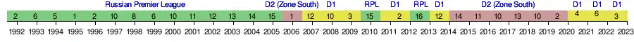 2024–25 | Russian First League 17th of 18 (relegated) | |||