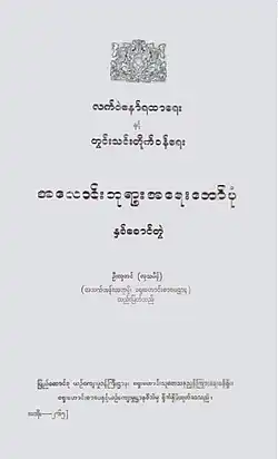 The first two publications did not explicitly state the author's name, leaving it as "a wise man from the time of Alaungpaya". When it was published again together with other chronicles in 1923, the authorship was attributed to Twinthin Taikwun Maha Sithu. But colonial period historians Pe Maung Tin and Maung Maung Gyi both later corrected the author to Letwe Nawrahta.[3] However, more recent scholars Hla Thamein (the editor of the 1961 publication of both versions),[4] Yi Yi and Kyauk Taing all say the 1883 version was written by Twinthin Taikwun, while Thaw Kaung sides with earlier historians, and says it was Letwe Nawrahta.[3]