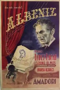 Albéniz is a 1947 black-and-white Argentine biographical drama film of the classical era of Argentine cinema, directed by Luis César Amadori and written by Pedro Miguel Obligado. The film is based on the life of Spanish composer and pianist, Isaac Albéniz, one of the foremost composers of the Post-romantic era.