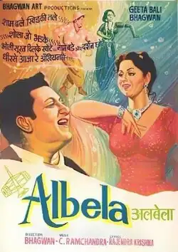 Albela is a 1951 Bollywood musical comedy film directed by and starring Bhagwan Dada and Geeta Bali.[1] A Hindi classic, it was the third highest-grossing film at the Indian Box Office in 1951 and its soundtrack by C. Ramchandra was acclaimed.[2][3]