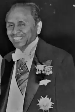 Ratsimamanga was a member of the delegation that negotiated Madagascar's independence from France.[3] 77% of Malagasy voted for independence in the 1958 referendum,[25] and after the independence, Ratsimamanga was appointed the Malagasy Republic ambassador to France from 1960 to 1972.[2] After the 1972 Coup d'état, on 14 December 1972, he was appointed the first Ambassador of the Malagasy Republic to China and the Soviet Union.[27] He later established embassies in West Germany, North Korea, and Sierra Leone.[28][29]