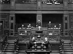 For the Prussian Conservative Party, Levetzow sat in the Reichstag of the North German Confederation from 1867 to 1871, where he represented the constituency of Königsberg (Neumark).[5] From 1877 to 1884, as a member of the German Conservative Party, he was a member of the 3rd constituency of the Frankfurt (Oder) district in the Imperial Reichstag. After a three-year break, he returned to the Reichstag in 1887, where he served for four more legislative periods until his death in 1903.[6] From 1881 to 1884, and from 1888 to 1895, he was President of the Reichstag.[7] In 1895, Levetzowstrasse in Berlin-Moabit was named after him. In 1897 he took over the leadership of the German Conservative faction serving in the Reichstag.[8] In 1890 Levetzow was appointed a life member of the Prussian House of Lords by King Wilhelm II.[9][10]