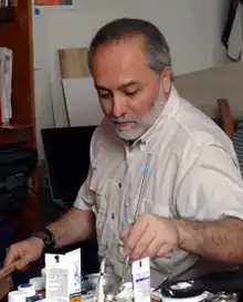Alberto Gomez Gomez (born December 12, 1956) is a figurative artist, painter and master print maker. Born in Bogotá, Colombia, Gomez Gomez became a citizen of the United States on July 29, 2011. He is best known for producing monumentally scaled murals in the United States and Colombia.[1][2][3] His art can also be found in private collections throughout the European capitals of Spain, Belgium, South Africa, Russia, Germany, the United Kingdom, and Italy. His signature style depicts people, figures, and daily life. His works often address spiritual, social, philosophical, historical, and political events and issues, although often in a humorous way.[4]